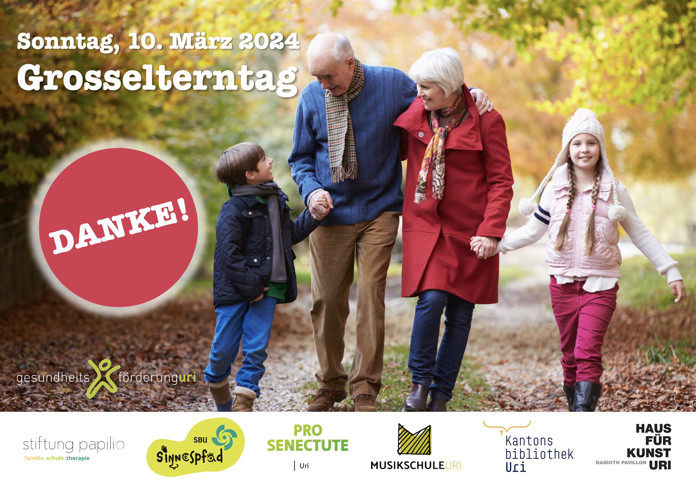 Der Einsatz von Grosseltern wird in den Familien enorm geschätzt, in der Öffentlichkeit jedoch kaum wahrgenommen. Deshalb wird seit 2014 an jedem zweiten Sonntag im März der Grosselterntag gefeiert. Ein Tag, an welchem das grosse Engagement von Grosseltern sichtbar gemacht und gewürdigt wird.