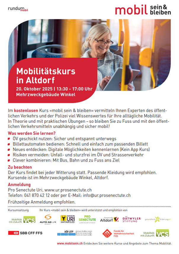 Detailinformationen finden Sie auf der Webseite des VCS Uri oder im Bildungsprogramm der Pro Senectute Uri.