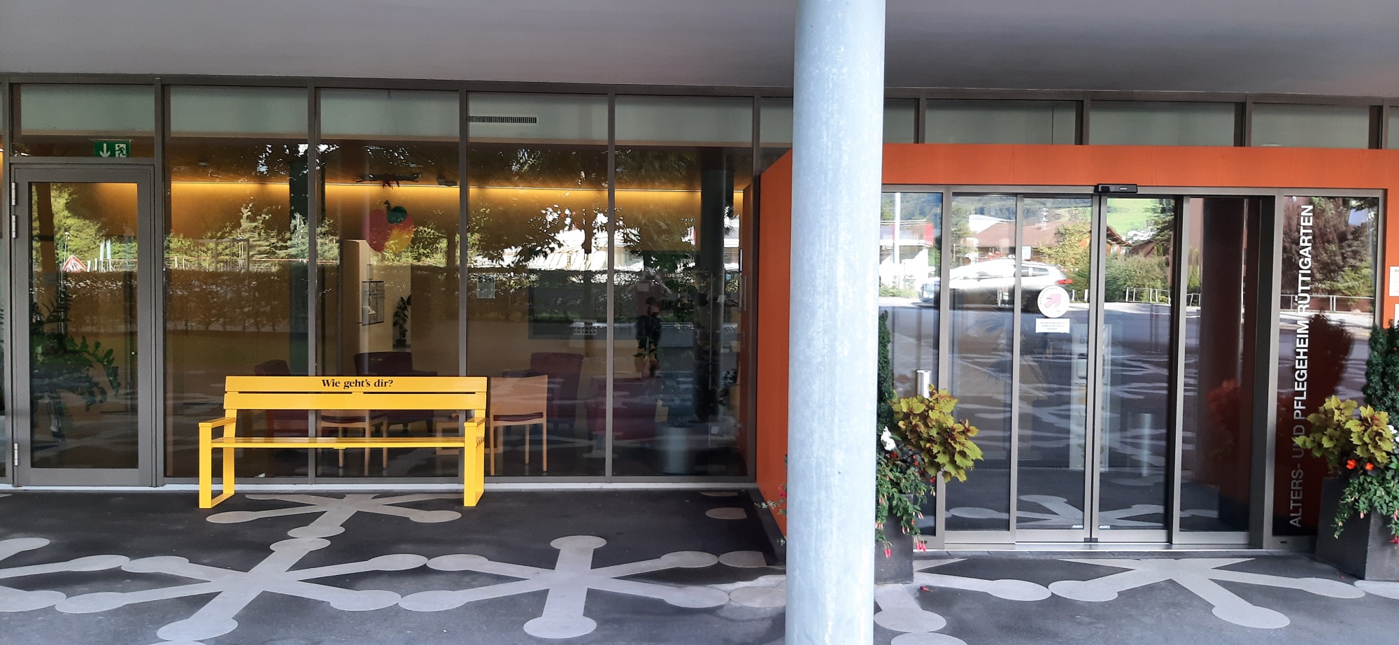 Das «Bänkli» steht links neben dem Haupteingang zum Alters- und Pflegeheim Rüttigarten. Die Bewohner sitzen jeweils viel vor dem Rüttigarten, bei welchem Sie nun beim Eingang der Angehörigen eine attraktive Sitzgelegenheit mehr zur Verfügung haben.