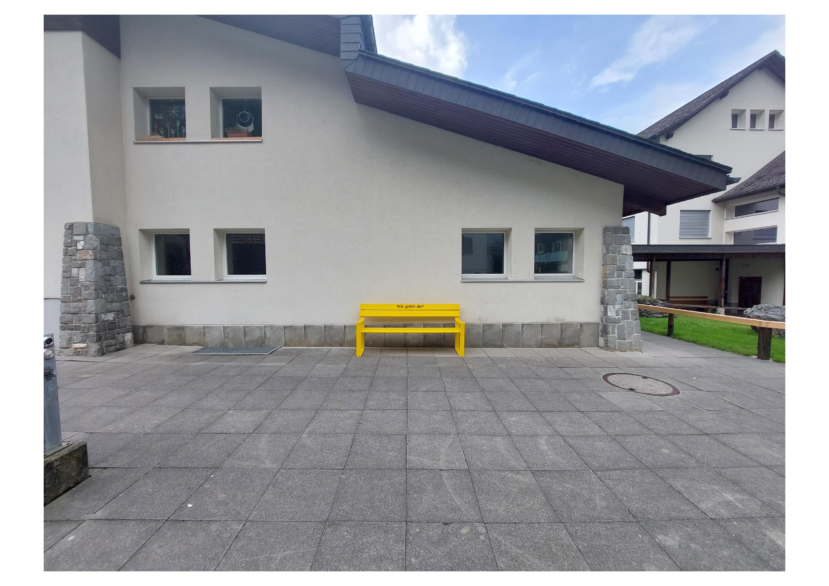 Das Bänkli befindet sich auf dem Spielplatz der Primarschule. Dort wird es jeweils von den Eltern genutzt, während die Kinder am Spielen sind.