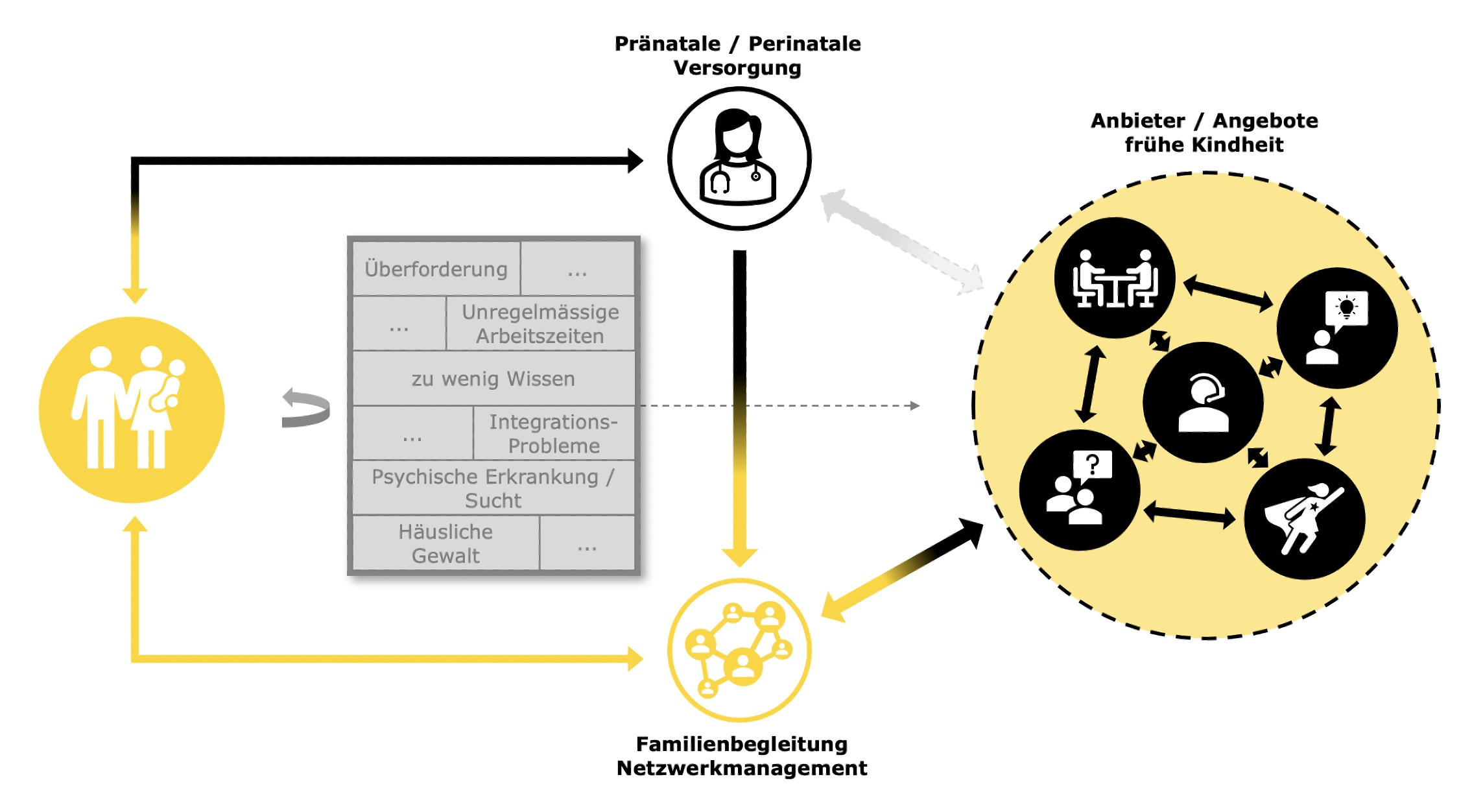 Die ersten Lebensjahre sind für Menschen prägend und nicht alle Eltern können ihren Kindern ein förderliches Umfeld bieten. Belastete Familien werden durch die Akteure im Bereich frühe Kindheit (z.B. Gynäkolog*innen, Hebammen, usw.) früh erkannt und an das «Netzwerk frühe Kindheit Uri» weitergeleitet, welches ressourcenorientiert, niederschwellig und kostenlos unterstützt und begleitet (Case Management). Die Familien werden bei Bedarf zu bestehenden Angeboten zugeführt oder dorthin begleitet.
