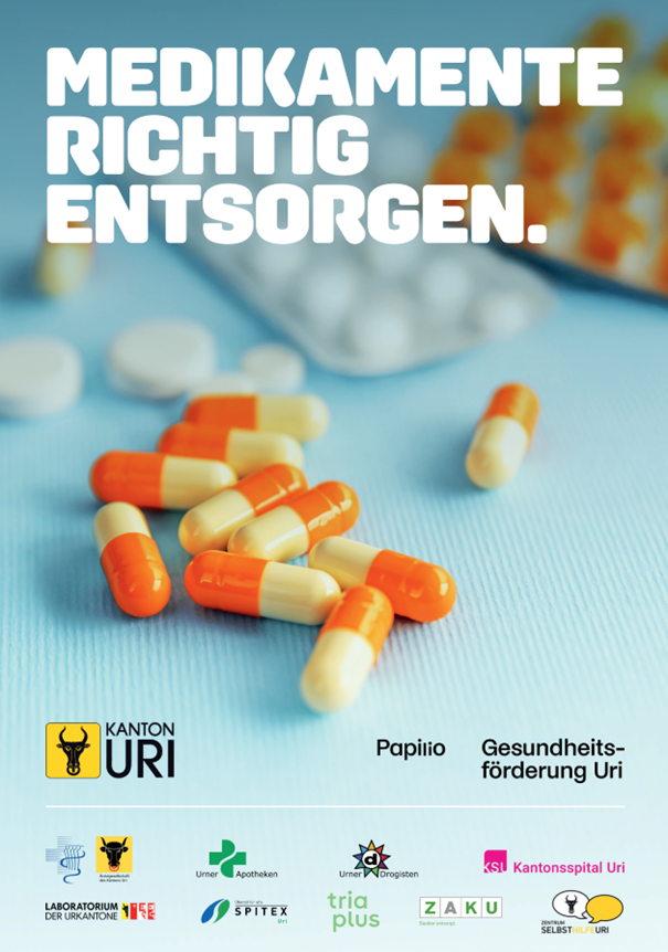 Medikamente gehören weder in den Abfall noch in den Abfluss, sondern müssen fachgerecht entsorgt werden. Die «Sammelaktion Medikamente» wird durchgeführt, damit die Urner Bevölkerung sensibilisiert wird, verfallene oder nicht mehr benötigte Medikamente (Tabletten, Kapseln, Salben, Tinkturen, Tropfen, usw.) zu entsorgen - und dies kostenlos...