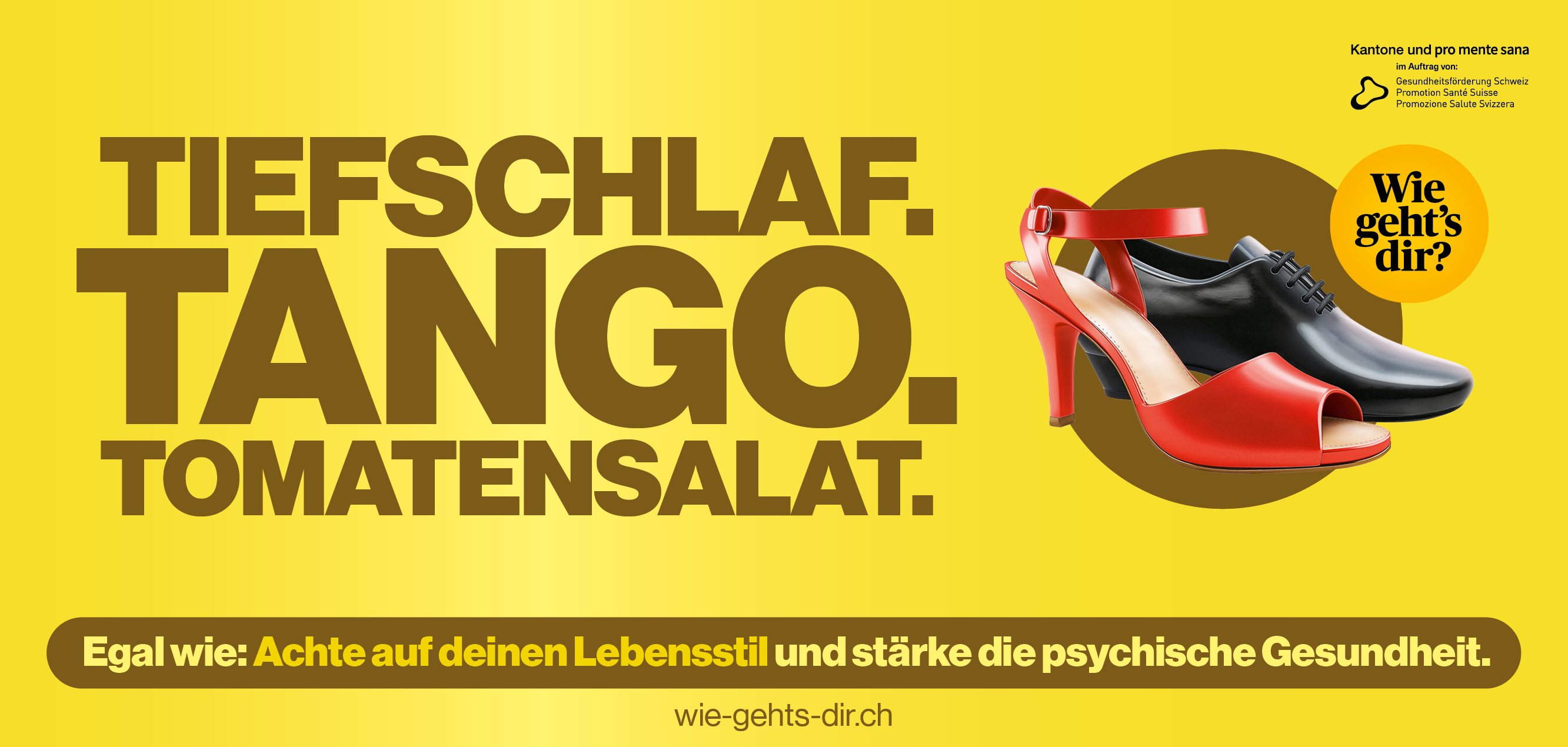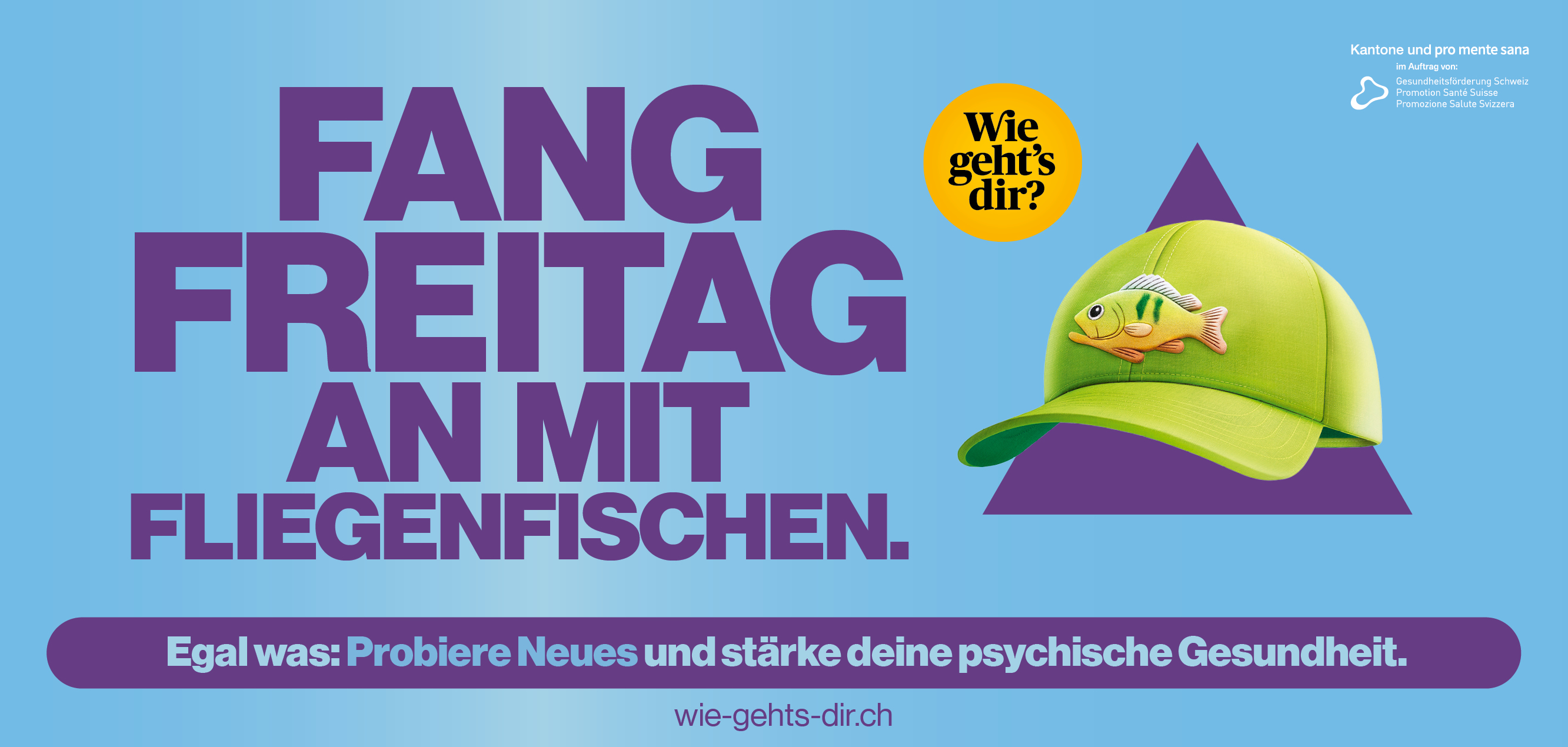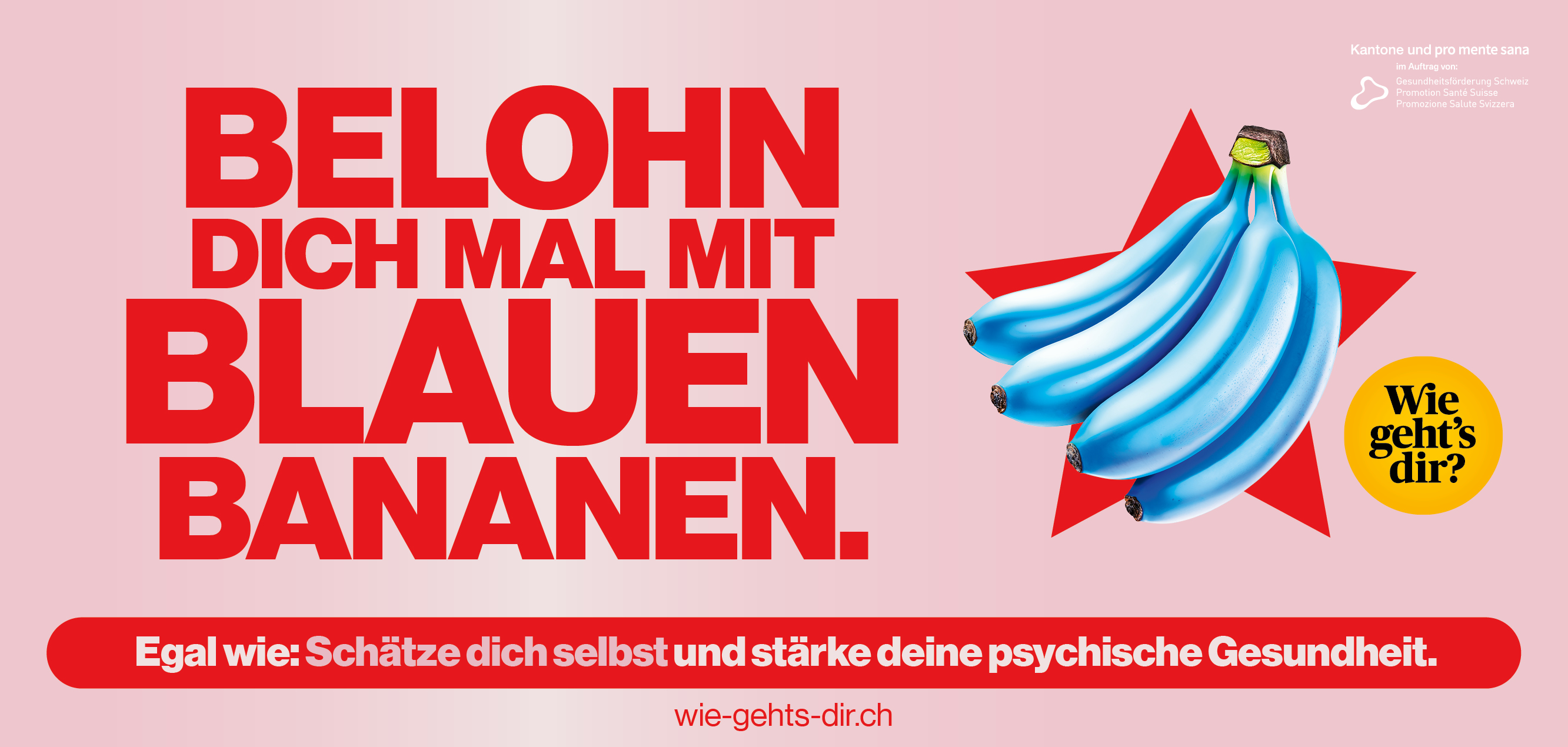 «Wie geht's dir?» ist eine Kampagne der Deutschschweizer Kantone und der Stiftung Pro Mente Sana im Auftrag von Gesundheitsförderung Schweiz.