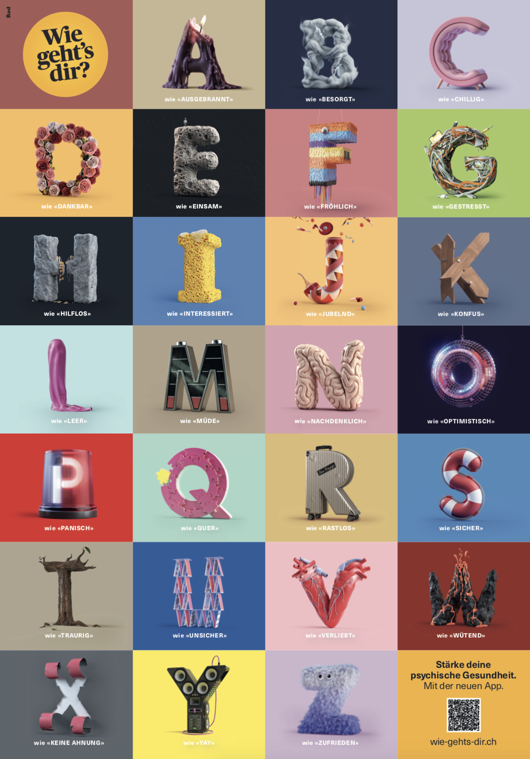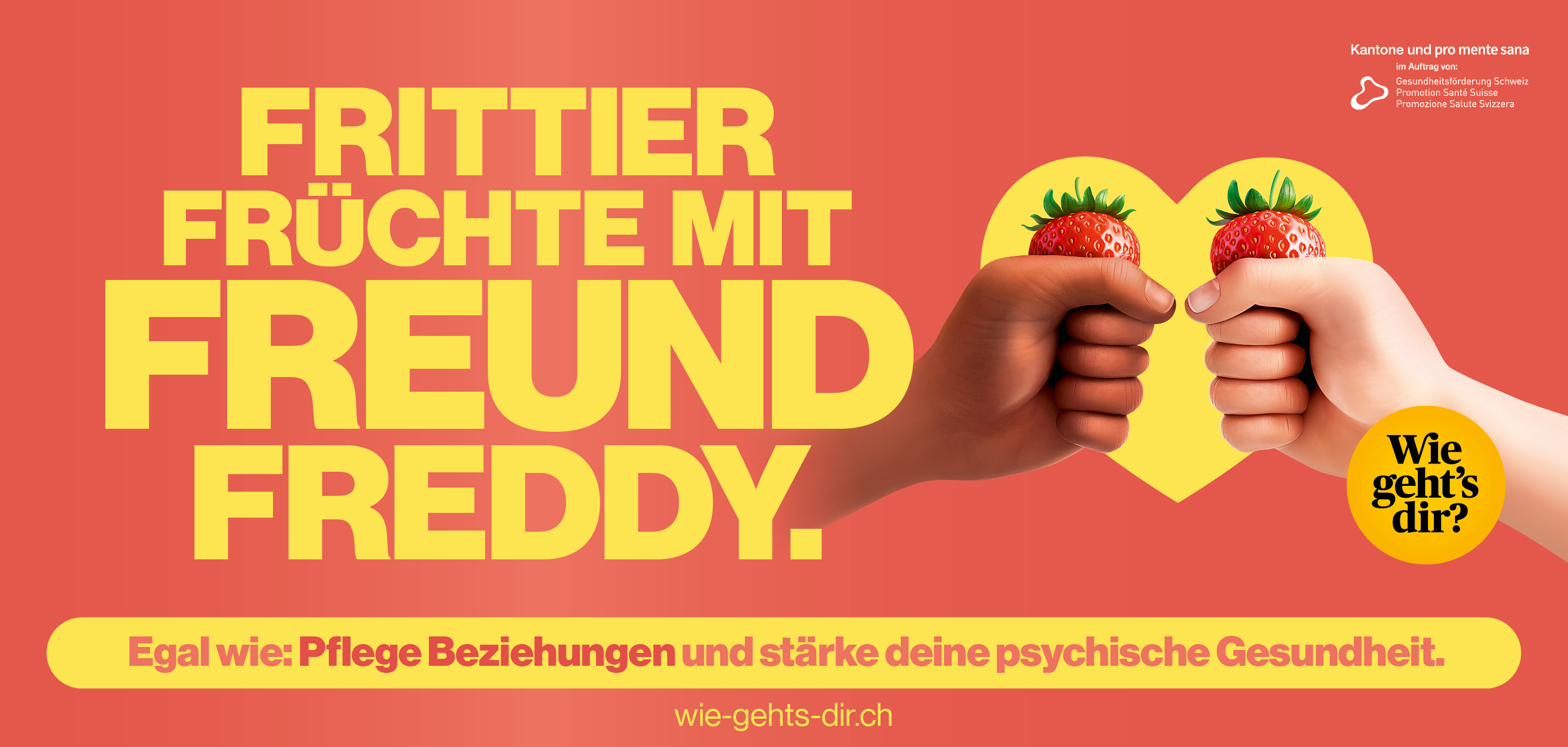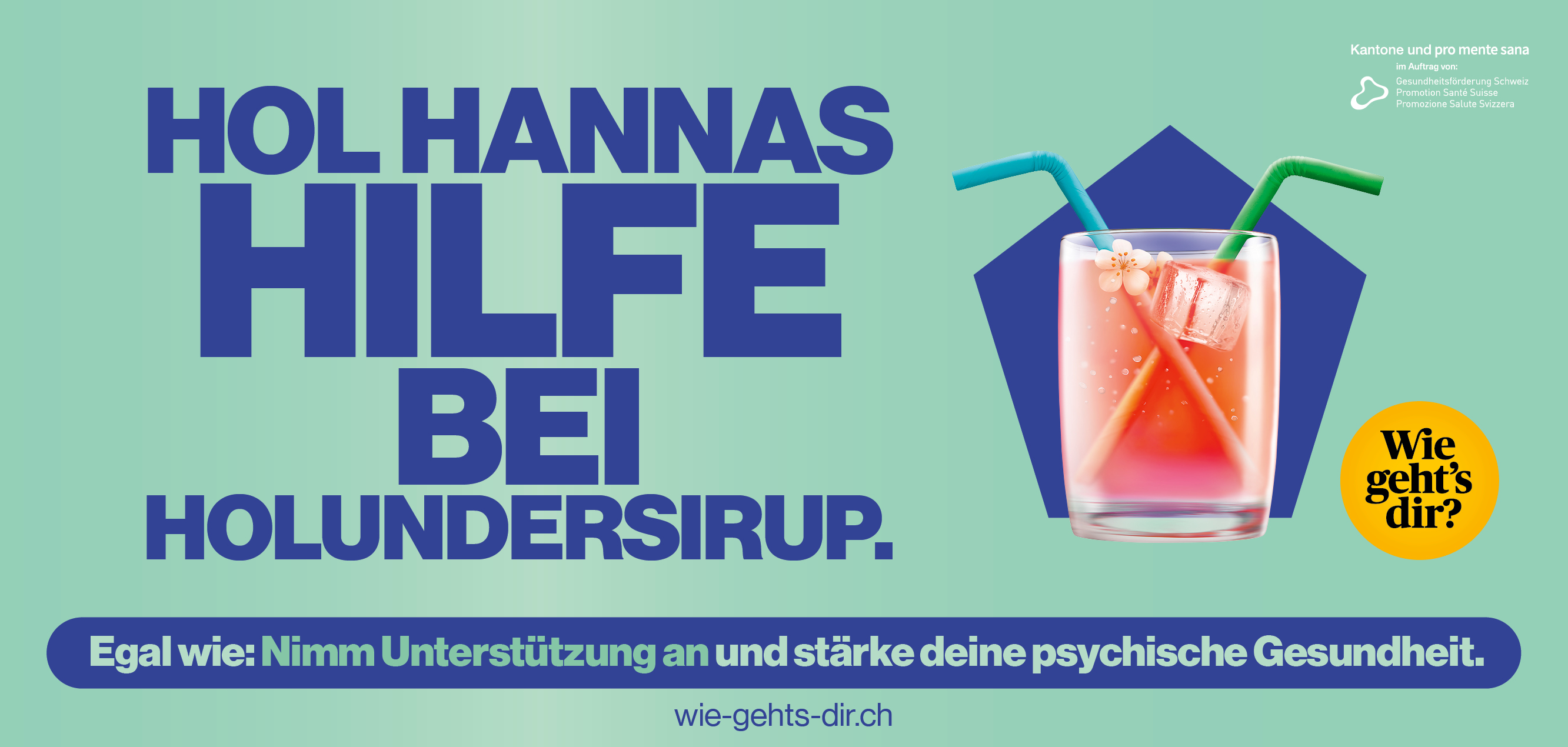«Wie geht's dir?» ist eine Kampagne der Deutschschweizer Kantone und der Stiftung Pro Mente Sana im Auftrag von Gesundheitsförderung Schweiz.