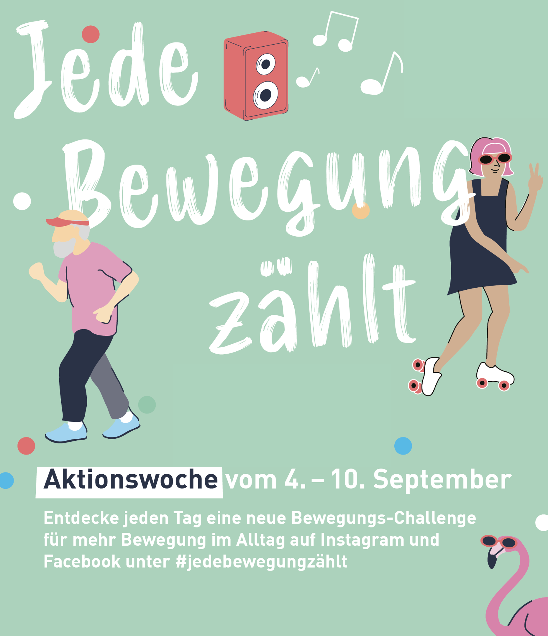 Mitmachen und fit bleiben: Das Netzwerk hepa führt vom 4. bis 10. September eine Aktionswoche durch und liefert täglich eine neue Übung für mehr Bewegung im Alltag. Entdecken Sie jeden Tag eine neue Bewegungs-Challenge auf Instagram und Facebook unter #jedebewegungzählt.