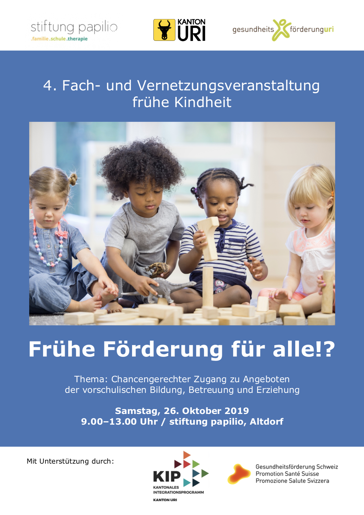 Am 26. Oktober 2019 findet im Kanton Uri bereits zum vierten Mal die Fach- und Vernetzungsveranstaltung frühe Kindheit statt - dieses Jahr unter dem Thema "Frühe Förderung für alle!?".